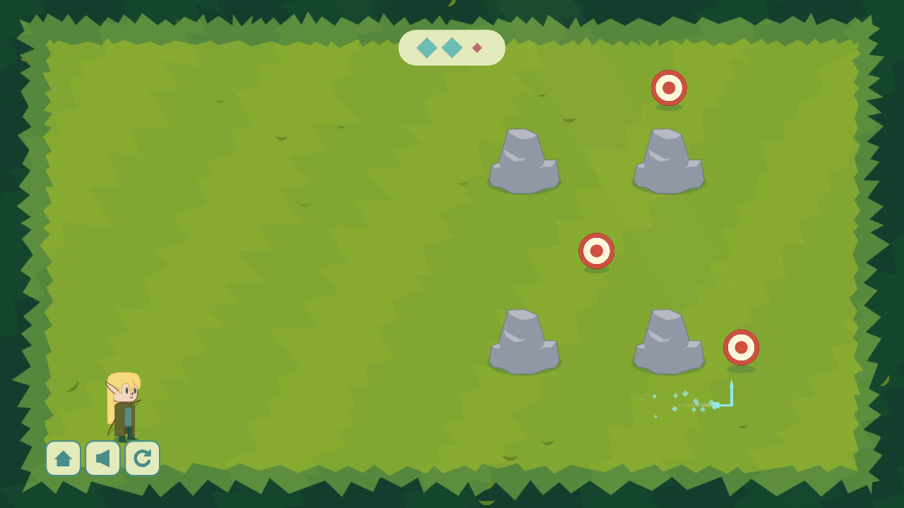 The elven archer found an enchanted arrow that seeks out its targets on its own. Guide the arrow and complete each level before your magic runs out!